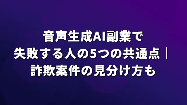 AIツール活用 音声生成AI副業で失敗する人の5つの共通点|詐欺案件の見分け方も 音声生成AI副業で失敗する人の共通パターンと詐欺案件の見分け方を解説。初心者が陥りがちな落とし穴と成功するための対策を具体的に紹介します。 2026.03.24 AIツール活用AI副業