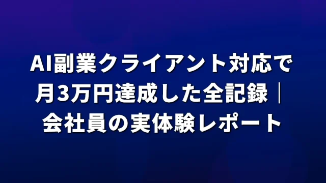 AI副業のクライアント対応で月3万円を達成した会社員の実体験を公開。初心者が陥りがちな失敗から安定収益化までの全プロセス、使用ツール、具体的な対応テクニックを詳しく解説します。
