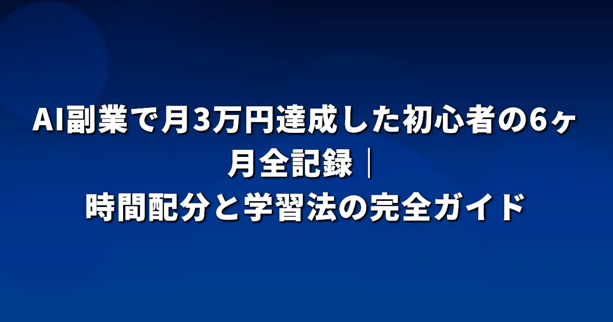 結論から言うと、AI副業完全初心者の私が月3万円を達成するまでに要した期間は6ヶ月でした。この記事の結果サマリー