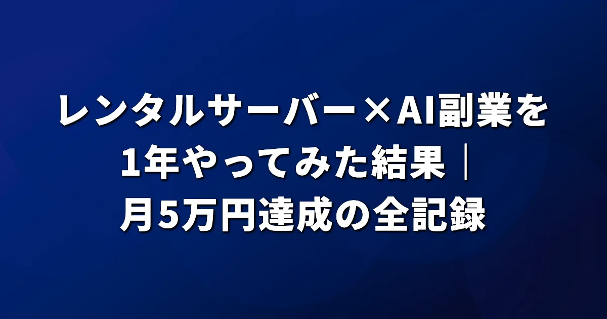 この記事では、レンタルサーバーを使ったAI副業を1年間実践した結果と、初心者が月5万円を達成するまでの具体的な手順を解説します。