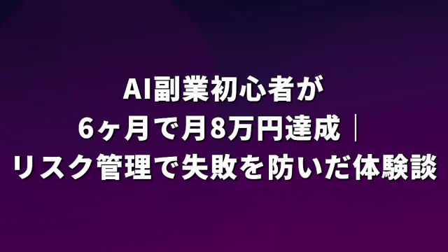 AIツール活用 AI副業初心者が6ヶ月で月8万円達成|リスク管理で失敗を防いだ体験談 AI副業初心者がリスク管理を徹底して月8万円を達成した体験談。失敗パターンと対策、おすすめツール、具体的な手順まで実体験をもとに解説します。 2026.04.05 AIツール活用AI副業