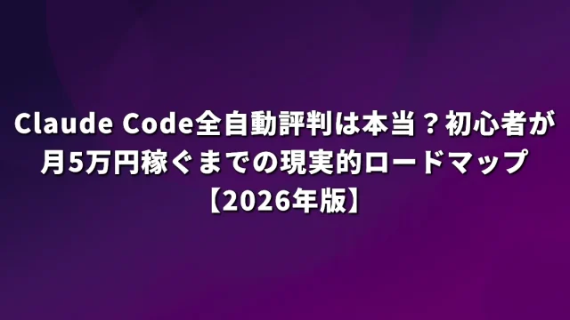 AI副業 Claude Code全自動評判は本当?初心者が月5万円稼ぐまでの現実的ロードマップ【2026年版】 Claude Codeで稼ぐのは可能ですが「全自動」は幻想。初月は赤字、3ヶ月目で月3万円が現実的。成功には正しいビジネスモデル選択と継続的な学習が必須です。 2026.04.20 AI副業副業の始め方
