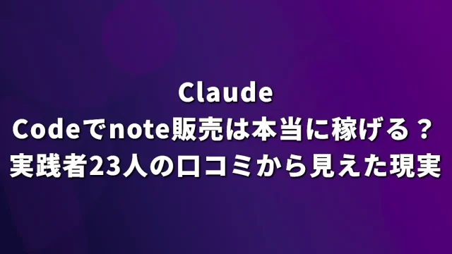 AI副業 Claude Codeでnote販売は本当に稼げる?実践者23人の口コミから見えた現実 Claude Codeを使ったnote販売の実際の収益性を、実践者23人の口コミから徹底検証。月10万円達成の条件、必要な投資額、初心者が陥る失敗パターンまで全て公開。 2026.04.20 AI副業収益化テクニック